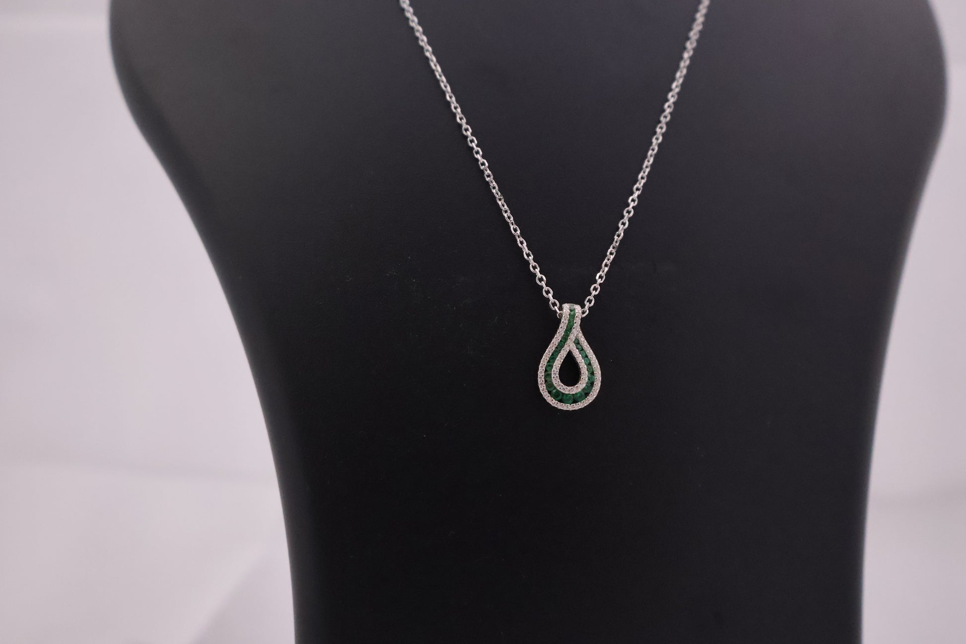 Graceful and timeless, this 925 silver necklace features a double teardrop pendant adorned with shimmering green stones and white accents. The elegant curves create a sophisticated silhouette, making it ideal for both casual and formal looks. A versatile addition to your jewelry collection, this piece radiates understated luxury.